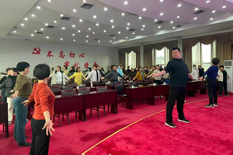 3 月 5 日下午,医院特邀临床营养科高级营养师、主任护师孙华教授开展《合理膳食、健康人生》健康讲座,并现场教授健身气功八段锦。